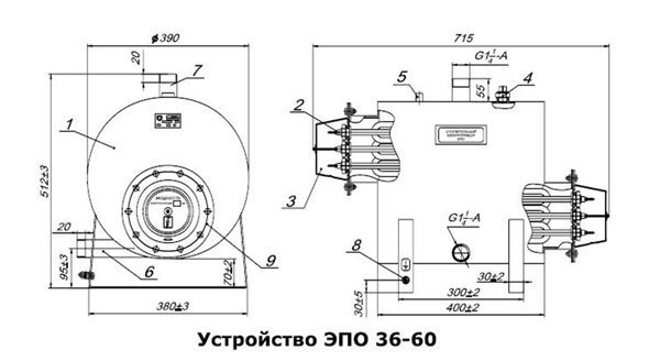 ЭВАН ЭПО 54 поставляется с полным набором необходимых компонентов, чтобы обеспечить его бесперебойную работу и долгий срок службы. В комплект входят: корпус котла, ТЭН, защитный кожух, температурное реле, датчик терморегулятора, входной и выходной патрубок, зажим М8 для нулевого защитного проводника РЕ и крышка.