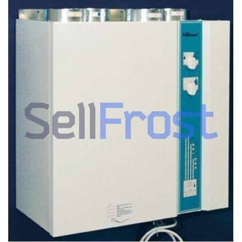 Конструкция: Корпус агрегата имеет 2-х стороннее покрытие из гальванизированной стали, с 20 мм изоляционным материалом внутри, покрашен в белый цвет. Агрегат имеет встроенную панель управления; два центробежных вентилятора, приточный и вытяжной; пластинчатый теплообменник перекрестного тока; электрический воздухонагреватель, управляемый термостатом, и фильтры. Пластинчатый теплообменник может быть заменен летним блоком на период, когда утилизация тепла не требуется.